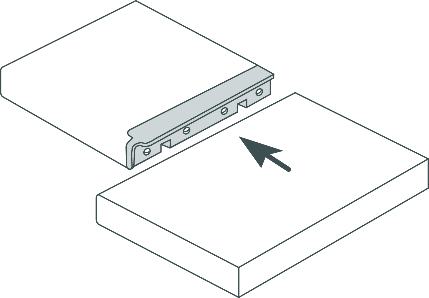 Brug samlebeslag når to bordplader skal samles enten i hjørne eller i forlængelse af hinanden. Opstår der luft i samlingen, kan man bruge hjørnesamlingsprofilen til en pæn afslutning.